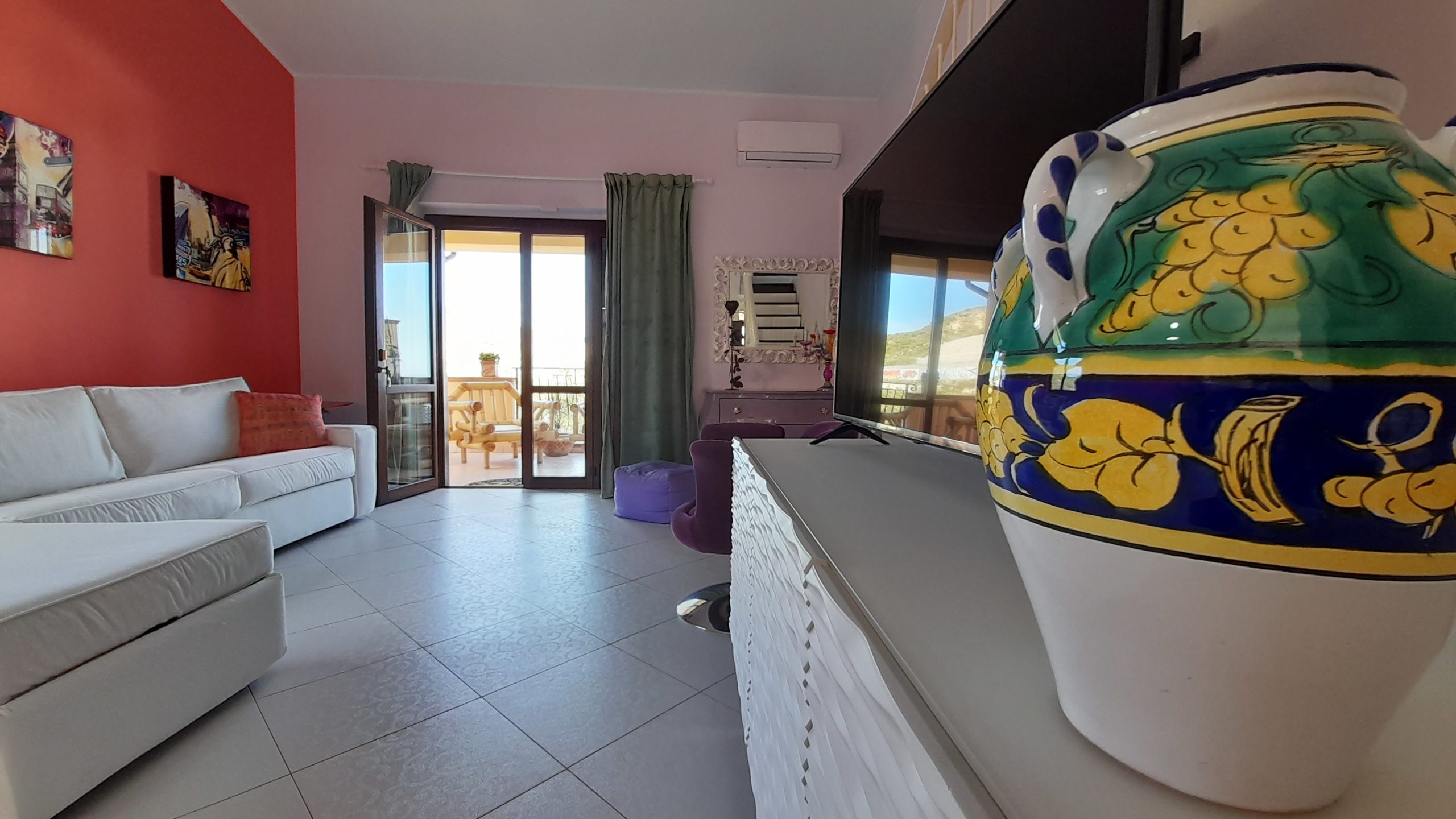 L'appartamento è composto da una zona giorno con accesso diretto sul terrazzo con vista mare, attrezzato con un confortevole divano letto e con una vista su Crotone e Capo Colonna.